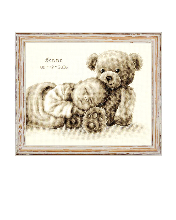 Taulun aiheena turvallisessa sylissä lepäävä lapsi.Kirjotaan muliinilangalla risti- ja jälkipistoin luonnonvalkoisen aid...