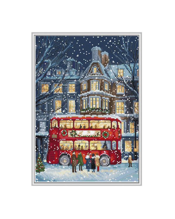 Kirjontapakkaus Taulu Lontoon bussi talvella