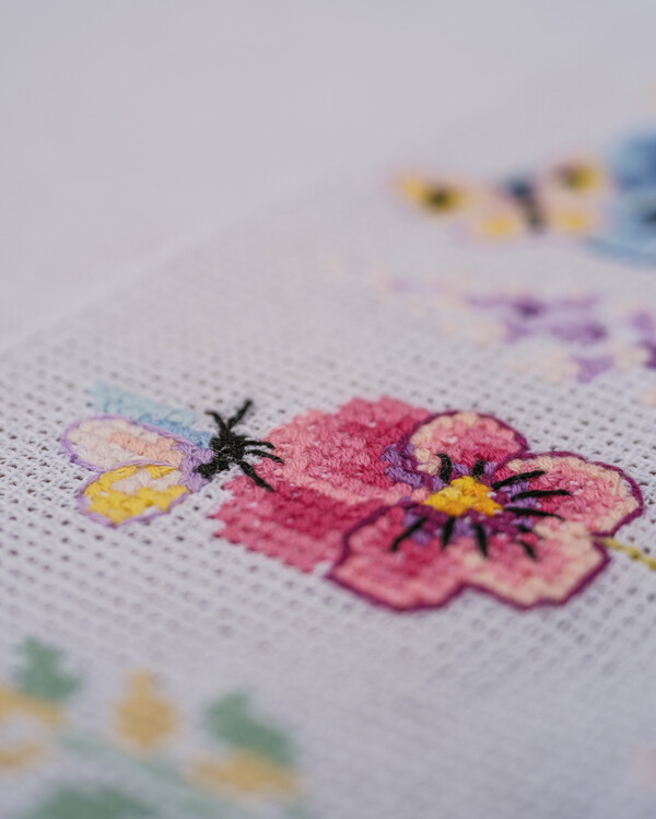 Kirjontapakkaus Pöytäliina Orvokit