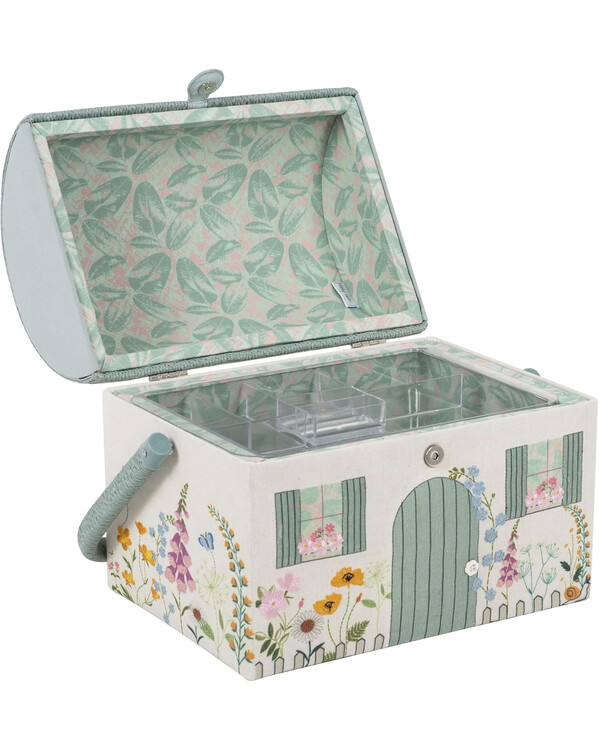 Tämä ompelurasia sopii erinomaisesti neulaa ja lankaa käsitöissään paljon käyttävälle. Tuo ompelunurkkaukseesi ripaus taikaa persoonallisella rasiallamme, joka näyttää pieneltä maalaismökiltä. Täydellinen neulojen, lankojen, nappien ja muiden pienten aarteiden järjestämiseen – ja samalla kaunis sisustuselementti kotiisi.